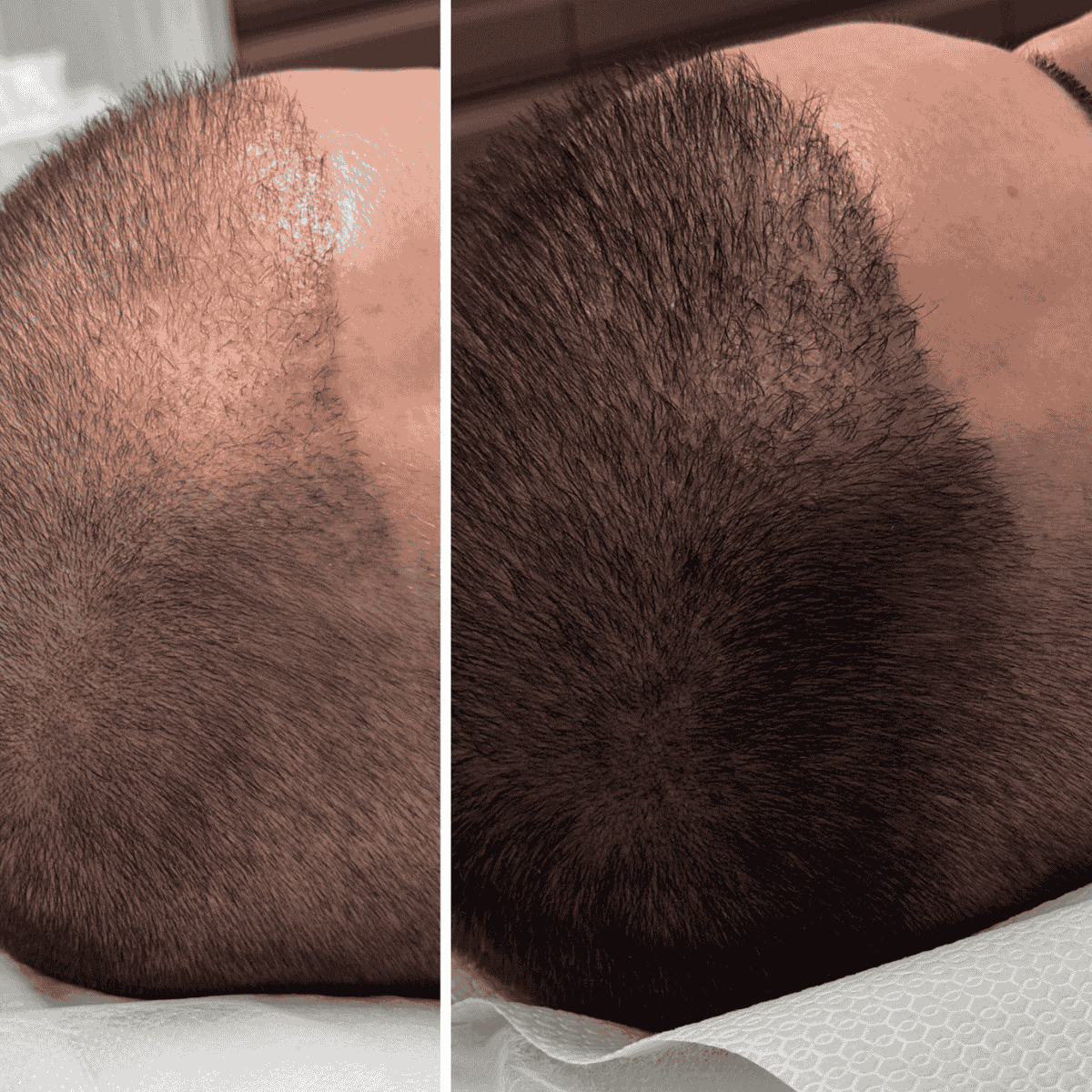 Efekt: zdrowsza skóra głowy, gęstsze i mocniejsze włosy już po kilku zabiegach. Najlepsze efekty są przy zastosowaniu od 4-5 zabiegów powtarzanych co około 3-4 tygodnie, następnie sesja przypominająca co kilka miesięcy.